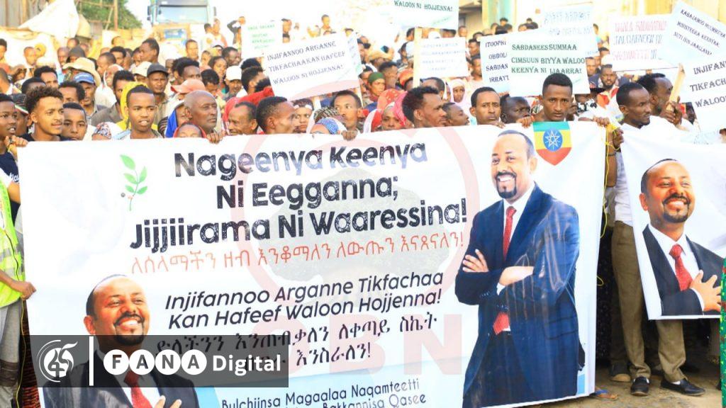 በድጋፍ ሰልፉም ባለፉት የለውጥ ዓመታት በተለያዩ ዘርፎች የተገኙ ስኬቶችን የሚገልጹ መልዕክቶች እየተላለፉ ይገኛሉ፡፡