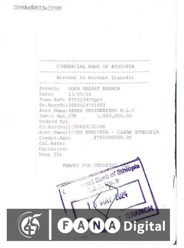 አዲስ አበባ፣ ግንቦት 5፣ 2016 (ኤፍ ቢ ሲ) ገደብ ኢንጂነሪንግ ኃላፊነቱ የተወሰነ የግል ማህበር ለ#ጽዱ ኢትዮጵያ ንቅናቄ አንድ ሚሊየን ብር በማበርከት ንቅናቄውን ተቀላቅሏል፡፡