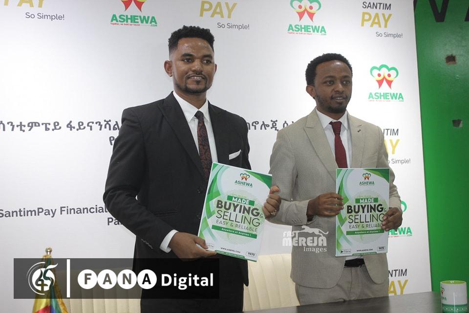 አዲስ አበባ፣ ግንቦት 13፣ 2016 (ኤፍ ቢ ሲ) አሸዋ ቴክኖሎጂ ሶሉሽን አክሲዮን ማህበር ከሳንቲምፔይ ፋይናንሻል ሶሉሽን አክሲዮን ማህበር ጋር በአጋርነት ለመስራት የሚያስችለውን ስምምነት ተፈራርሟል፡፡