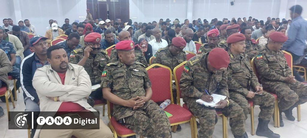 በመድረኩም የኮማንዶና አየር ወለድ ዋና አዛዥና የማዕከላዊ ሸዋ ኮማንድ ፖስት ሰብሳቢ ሌተናል ጀኔራል ሹማ አብዴታ እና የኮማንዶና አየር ወለድ ዕዝ ምክትል አዛዥና የሰሜን ሸዋ ኮማንድ ፖስት ሰብሳቢ ብርጋዴል ጄኔራል አበባው ሰይድን ጨምሮ የሠራዊቱ፣ የዞንና የወረዳ አመራሮች ተገኝተዋል።