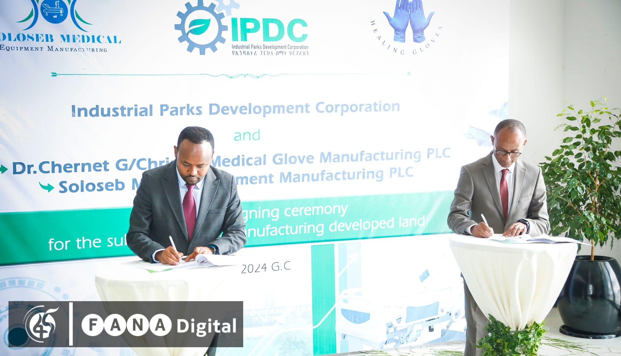 በዛሬው እለት የውል ስምምነት የተፈራረሙት ሁለት ኩባንያዎች በቂሊንጦ ኢንዱስትሪ ፓርክ የለማ መሬት በመውሰድና የራሳቸውን ማምረቻ በመገንባት የሜዲካል ግሎቭ፣ ዊልቼሮችን፣ ስትሬቸሮችን እና ሌሎች የህክምና ቁሳቁሶችን የሚያመርቱ ይሆናል ተብሏል፡፡