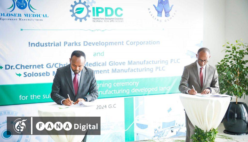 በዛሬው እለት የውል ስምምነት የተፈራረሙት ሁለት ኩባንያዎች በቂሊንጦ ኢንዱስትሪ ፓርክ የለማ መሬት በመውሰድና የራሳቸውን ማምረቻ በመገንባት የሜዲካል ግሎቭ፣ ዊልቼሮችን፣ ስትሬቸሮችን እና ሌሎች የህክምና ቁሳቁሶችን የሚያመርቱ ይሆናል ተብሏል፡፡