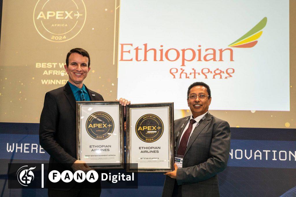 በዓመታዊው የ“ኤየርላይን ፓሴንጀር ኤክስፔሪያንስ አሶሴሽን“ (አፔክስ) በተባለ የ2024 የደንበኞች ምርጫ ሽልማት ላይ ዓየር መንገዱ ፥ የአፍሪካ ምርጥ የበረራ ላይ መዝናኛ እና የአፍሪካ ምርጥ የበረራ ላይ ገመድ ዓልባ ኢንተርኔት አገልግሎት ተሸላሚ መሆኑን አስታውቋል፡፡