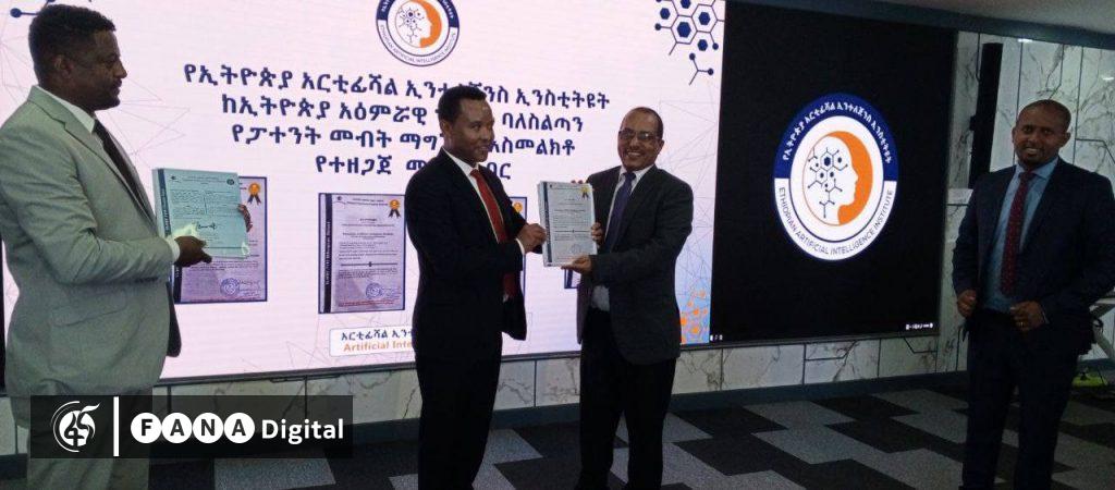 የኢትዮጵያ አርቲፊሻል ኢንተለጀንስ ኢንስቲትዩት ዋና ዳይሬክተር ወርቁ ጋቸና (ኢ/ር) ከኢትዮጵያ አዕምሯዊ ንብረት ባለሥልጣን ዋና ዳይሬክተር ወልዱ ይመስል የፓተንት መብት የእውቅና ምስክር ወረቀት መቀበላቸውን ኢዜአ ዘግቧል፡፡