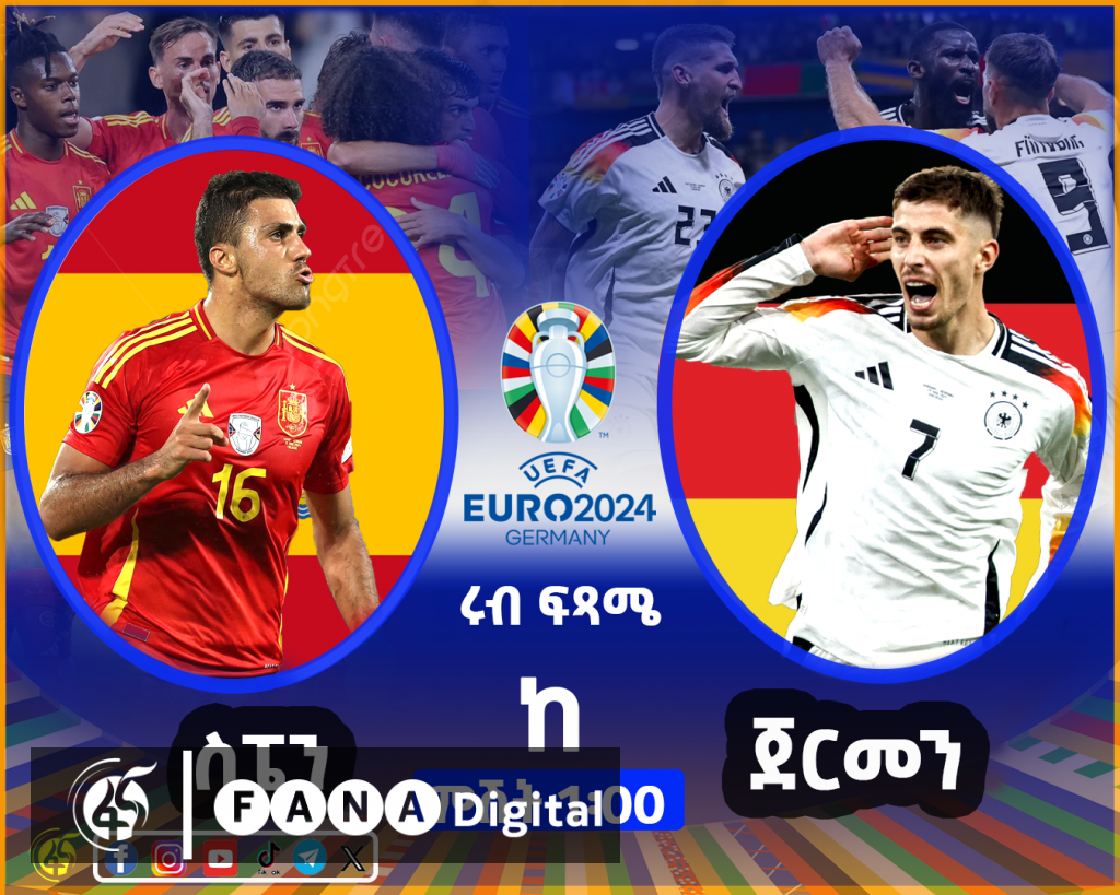 አዲስ አበባ፣ ሰኔ 28፣ 2016 (ኤፍ ቢ ሲ) በአውሮፓ ዋንጫ የሩብ ፍጻሜ መርሐ ግብር አዘጋጇ ጀርመን ከስፔን ጋር የምታደርገው ጨዋታ ተጠባቂ ነው፡፡