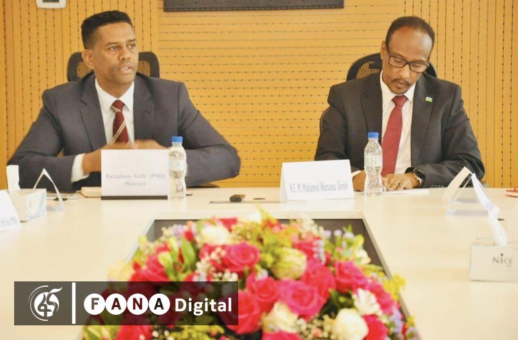አዲስ አበባ፣ ሐምሌ 10፣ 2016 (ኤፍ ቢ ሲ) የንግድና ቀጣናዊ ትስስር ሚኒስትር ካሳሁን ጎፌ (ዶ/ር) ከጅቡቲ የንግድ ሚኒስትር ሙሃመድ ዋርሳማ ጋር ተወያይተዋል፡፡