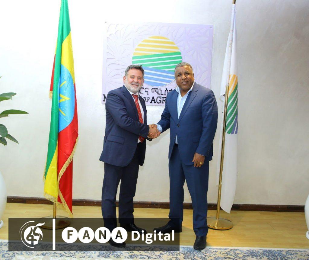 የግብርና ሚኒስትር ግርማ አመንቴ (ዶ/ር) በኢትዮጵያ የአውሮፓ ህብረት የአረንጓዴ ስምምነት ልዑክ ቡድን መሪ ሮቤርቶ ስኪሊሮ ጋር ተወያይተዋል።