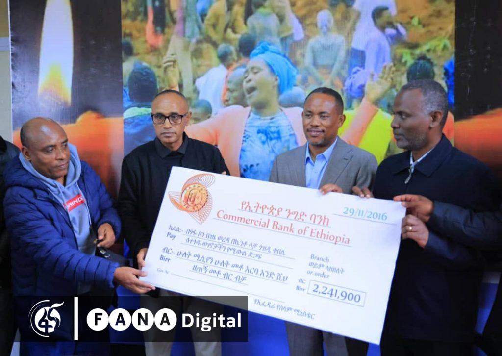 ከተደረገው ድጋፍ ውስጥ 2 ነጥብ 2 ሚሊየን ብሩ በጥሬ ገንዘብ ሲሆን÷ 4 ነጥብ 2 ሚሊየን ብር በላይ የሚገመተው ደግሞ በአይነት መሆኑ ተገልጿል።