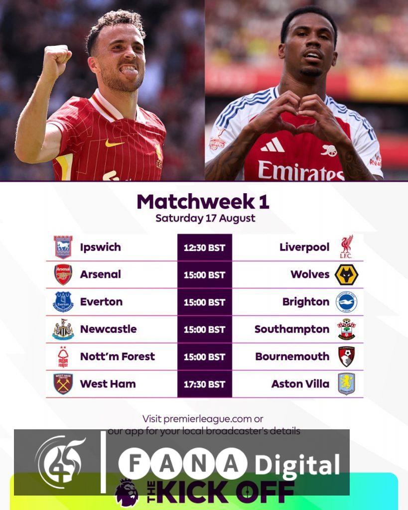 አዲስ አበባ፣ ነሐሴ11፣ 2016 (ኤፍ ቢ ሲ) በ2024/25 የእንግሊዝ ፕሪሚየር ሊግ የመጀመሪያ ሳምንት ጨዋታዎች ዛሬ ሲቀጥሉ ከቀኑ 11 ሠዓት ላይ አራት ጨዋታዎች ይደረጋሉ፡፡
