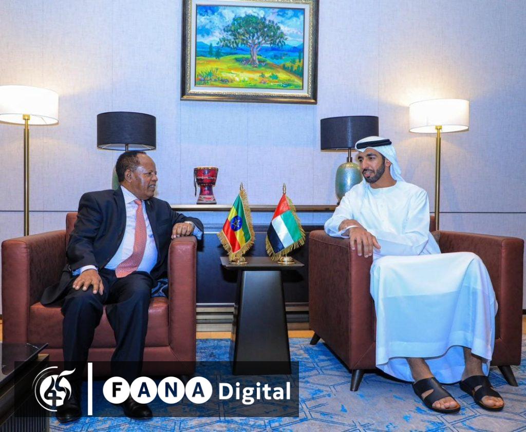 አዲስ አበባ፣ ነሐሴ 11፣ 2016 (ኤፍ ቢ ሲ) የውጭ ጉዳይ ሚኒስትር አምባሳደር ታዬ አፅቀስላሴ ከተባበሩት አረብ ኤሜሬቶች የካቢኔ አባል እና የውጭ ጉዳይ ሚኒስትር ዴኤታ ሼክ ሻቡት ናህያን አል ናህያን ጋር ተወያይተዋል፡፡