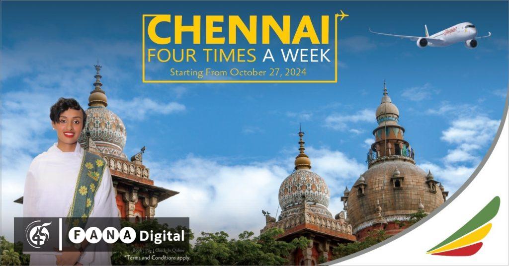 በዚህም ወደ ቸናይ ከተማ በሳምንት አራት ጊዜ በረራ ማድረግ እንደሚጀምር መገለጹን የአየር መንገዱ መረጃ ያመላክታል፡፡