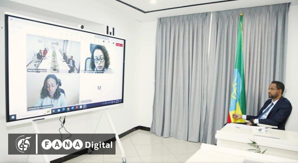 የኢንዱስትሪ ፓርኮች ኮርፖሬሽን ዋና ሥራ አስፈጻሚ ፍስሐ ይታገሱ (ዶ/ር) በሩሲያ ሞስኮ የኢትዮጵያ ኤምባሲ ምክትል አምባሳደር ሮዛ የሩቅነህ ጋር በበይነ መረብ ተወያይተዋል፡፡