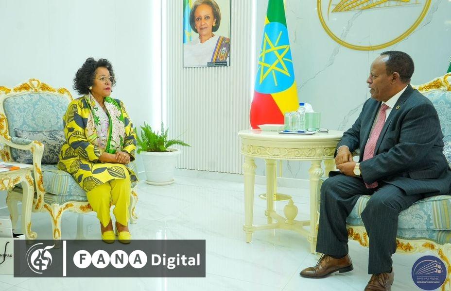 የውጭ ጉዳይ ሚኒስትር አምባሳደር ታዬ አፅቀ ሥላሴ ከአፍሪካ ሕብረት ልማት ኤጀንሲና የአፍሪካ ልማት አጋርነት ዋና ሥራ አስፈፃሚ ናርዶስ በቀለ ጋር ባደረጉት ውይይት÷ በኢትዮጵያ እና በኤጀንሲው መካከል በሚኖሩ የሚና እና የትብብር መስኮች ላይ መክረዋል፡፡