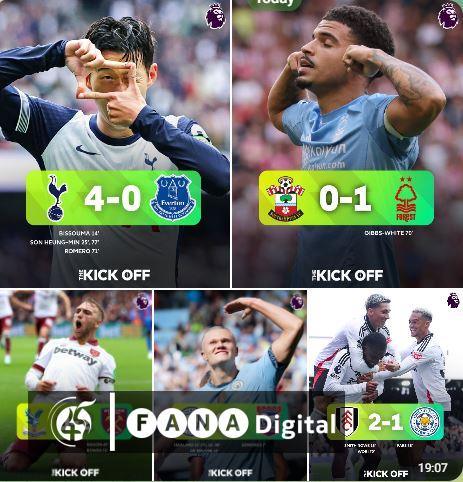 በዚህም መሠረት÷ ቶተንሃም ኤቨርተንን 4 ለ 0፣ ዌስትሃም ክሪስታል ፓላስን 2 ለ 0፣ ኖቲንግሃም ፎረስት ሳውዝ ሃምተንን 1 ለ 0፣ ፉልሃም ሌስተር ሲቲን 2 ለ 1 በሆነ ውጤት አሸንፈዋል፡፡