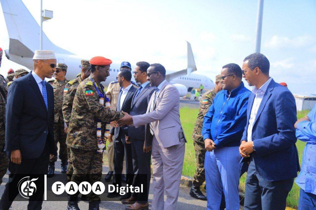 የሶማሌ ክልል ርዕሰ መስተዳድር ሙስጠፌ መሀመድን ጨምሮ የሠራዊቱና የክልሉ ከፍተኛ አመራሮች አቀባበል አድርገውላቸዋል።
