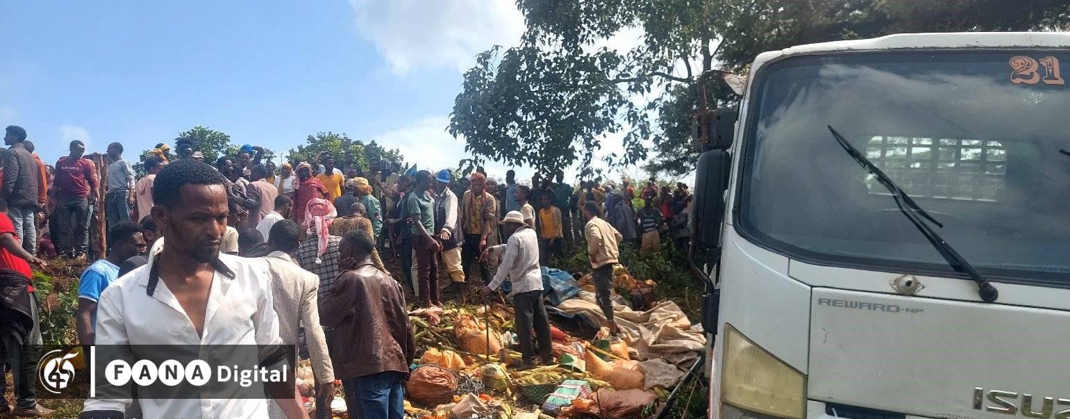 አደጋው አይሱዙ የጭነት ተሽከርካሪ ሰዎችን አሳፍሮ ሲጓዝ በመገልበጡ የደረሰ ነው፡፡