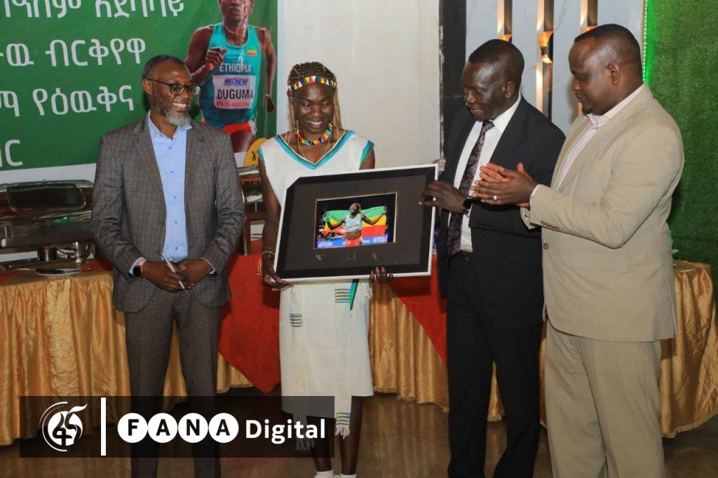 አትሌቷ ላስመዘገበችው ውጤትም በአቶ አሻደሊ ሀሰን በኩል ለአትሌቷ በአሶሳ ከተማ ለኢንቨስትመን የሚውል 1 ሺህ ካሬ ሜትር ቦታ ተበርክቶላታል፡፡