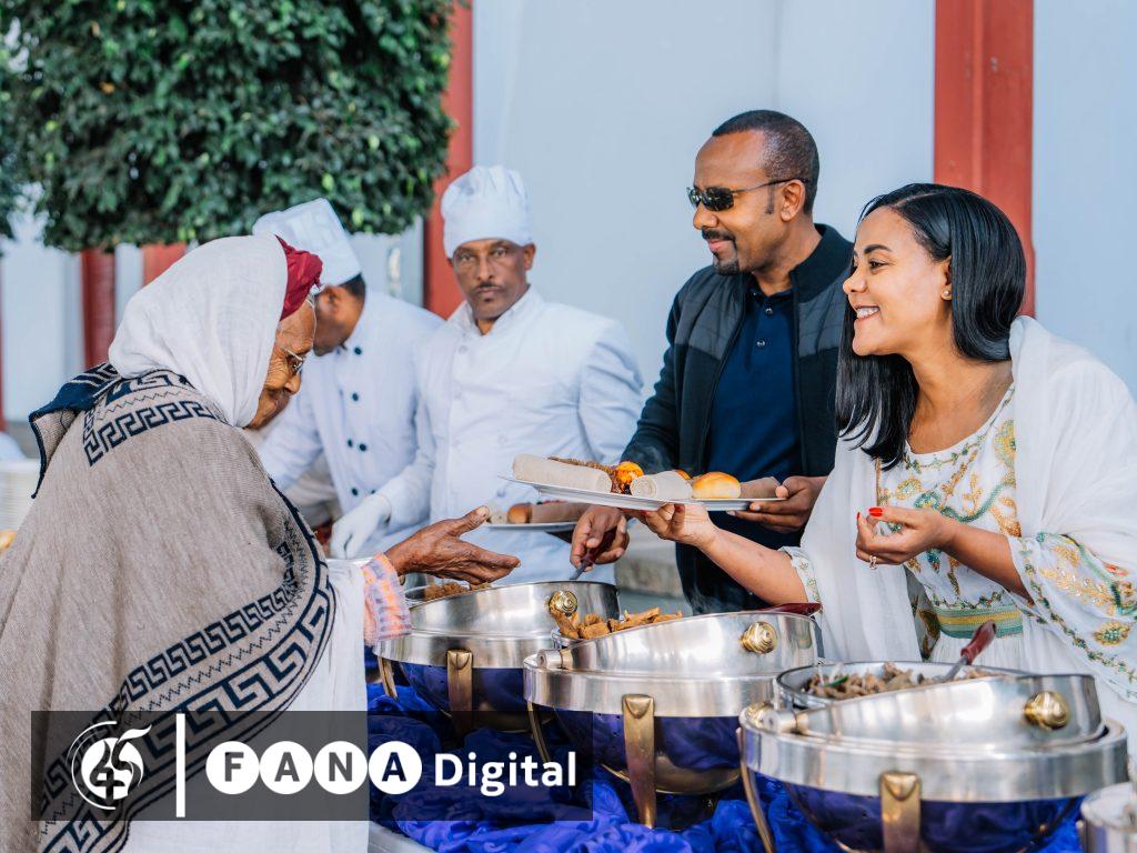 በዚህም ጠቅላይ ሚኒስትር ዐቢይ አሕመድ (ዶ/ር) እና ቀዳማዊት እመቤት ዝናሽ ታያቸው ለዐቅመ ደካሞች ማዕድ አጋርተዋል።