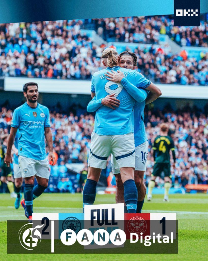 ማንቼስተር ሲቲ በሜዳው ኢቲሃድ ስቴዲየም ብሬንትፎርድን አስተናግዶ 2 ለ 1 በሆነ ውጤት አሸንፏል፡፡