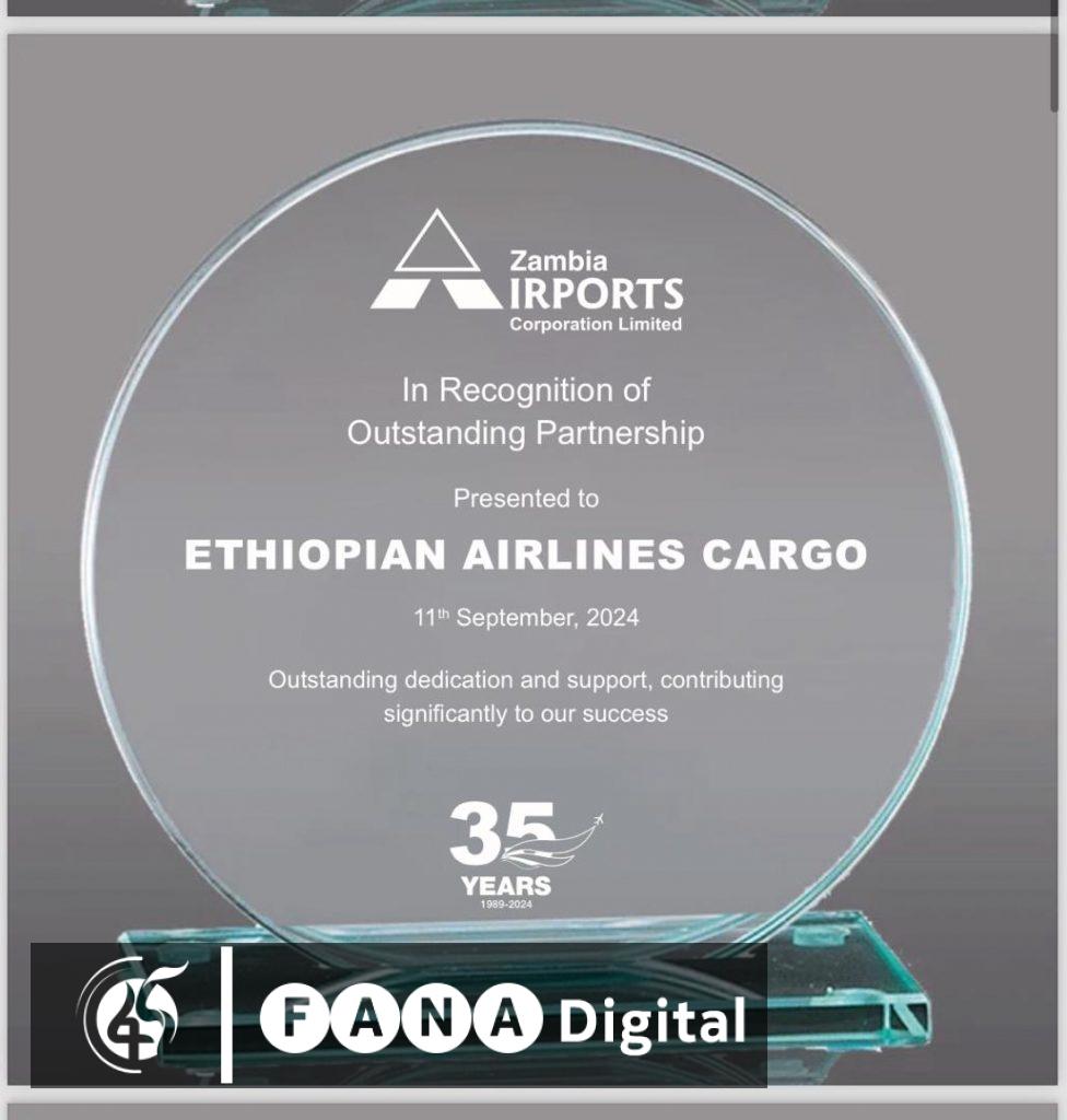 አዲስ አበባ፣ መስከረም 9፣ 2017 (ኤፍ ቢ ሲ) የኢትዮጵያ አየር መንገድ ከዛምቢያ ኤርፖርቶች ኮርፖሬሽን የእውቅና ሽልማት ተበርክቶለታል፡፡