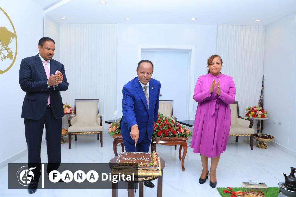 የውጭ ጉዳይ ሚኒስቴር ከፍተኛ አመራሮች ለፕሬዚዳንት ታዬ አጽቀሥላሴ መልካም ምኞታቸውን ገለጹ Feven Bishaw 1 year ago አዲስ አበባ፣ መስከረም 28፣ 2017 (ኤፍ ቢ ሲ) የውጭ ጉዳይ ሚኒስቴር መሥሪያ ቤት ሚኒስትር ዴኤታዎች እና ከፍተኛ አመራሮች ለፕሬዚዳንት ታዬ አጽቀሥላሴ የእንኳን ደስ ያለዎት መልዕክት እና መልካም የሥራ ጊዜ እንዲሆንላቸው ምኞታቸውን ገልጸዋል።