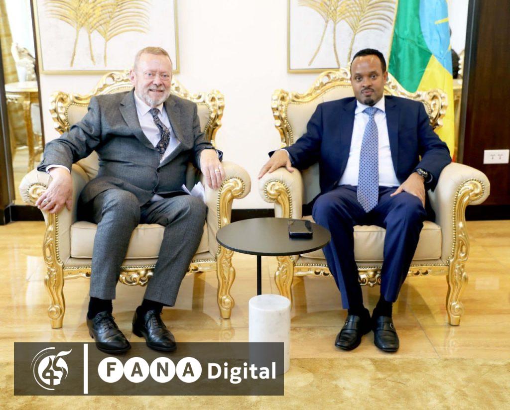አዲስ አበባ፣ ጥቅምት 1፣ 2017 (ኤፍ ቢ ሲ) የገንዘብ ሚኒስትር አህመድ ሺዴ ከዩናይትድ ኪንግደም የአፍሪካ ሚኒስትር ከሃይበሪው ሎርድ ኮሊንስ ጋር ተወያዩ።
