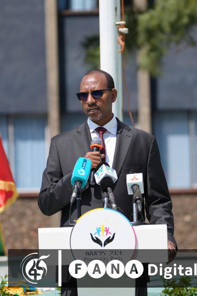 አዲስ አበባ፣ ጥቅምት 4፣ 2017 (ኤፍ ቢ ሲ) የኢትዮጵያ ሠንደቅ ዓላማ የፍትሕ፣ የአንድነት፣ የእኩልነትና የአርበኝነት ኅብረብሔራዊ መገለጫ ምልክት ነው ሲሉ በም/ ጠቅላይ ሚኒስትር ማዕረግ የዴሞክራሲ ስርዓት ግንባታ ማስተባበሪያ ማዕከል ኃላፊና የብልጽግና ፓርቲ ም/ፕሬዚዳንት አቶ አደም ፋራህ ገለጹ።