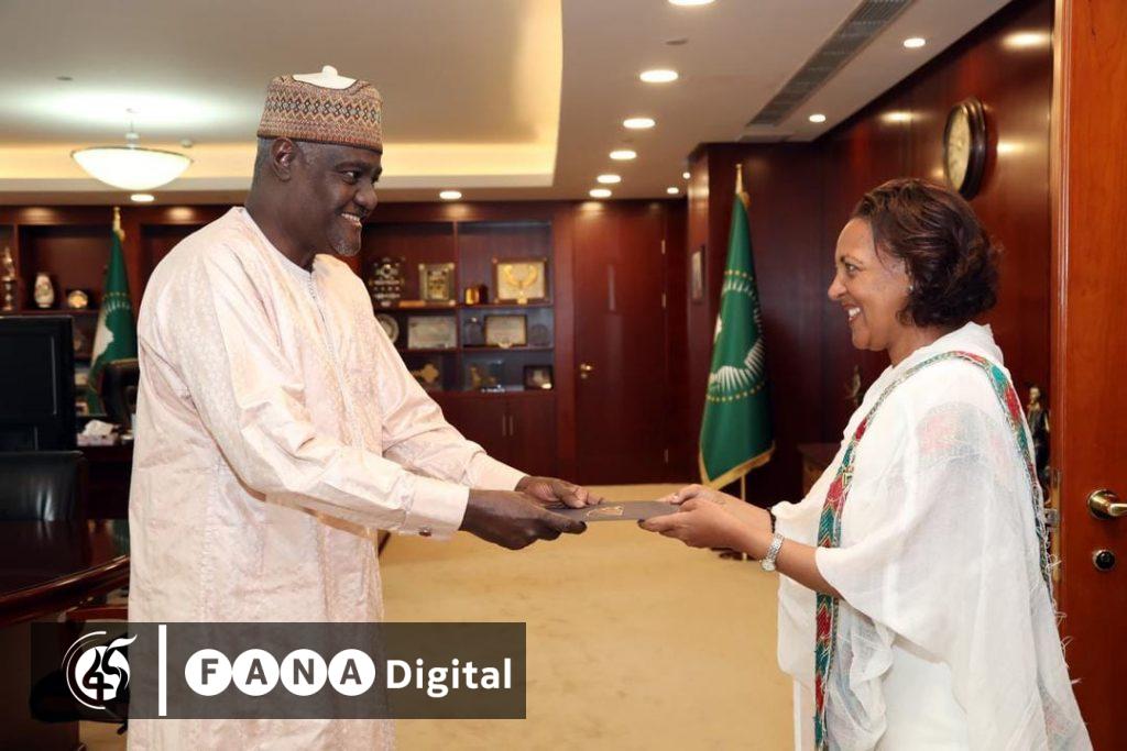 በአፍሪካ ሕብረት እና የተባበሩት መንግስታት ድርጅት (ተመድ) የአፍሪካ ኢኮኖሚ ኮሚሽን የኢፌዴሪ ቋሚ መልዕክተኛ ሆነው የተሾሙት አምባሳደር ሂሩት ዘመነ የሹመት ደብዳቤያቸውን ለአፍሪካ ሕብረት ኮሚሽን ሊቀመንበር ሙሳ ፋቂ ማሃማት አቅርበዋል።