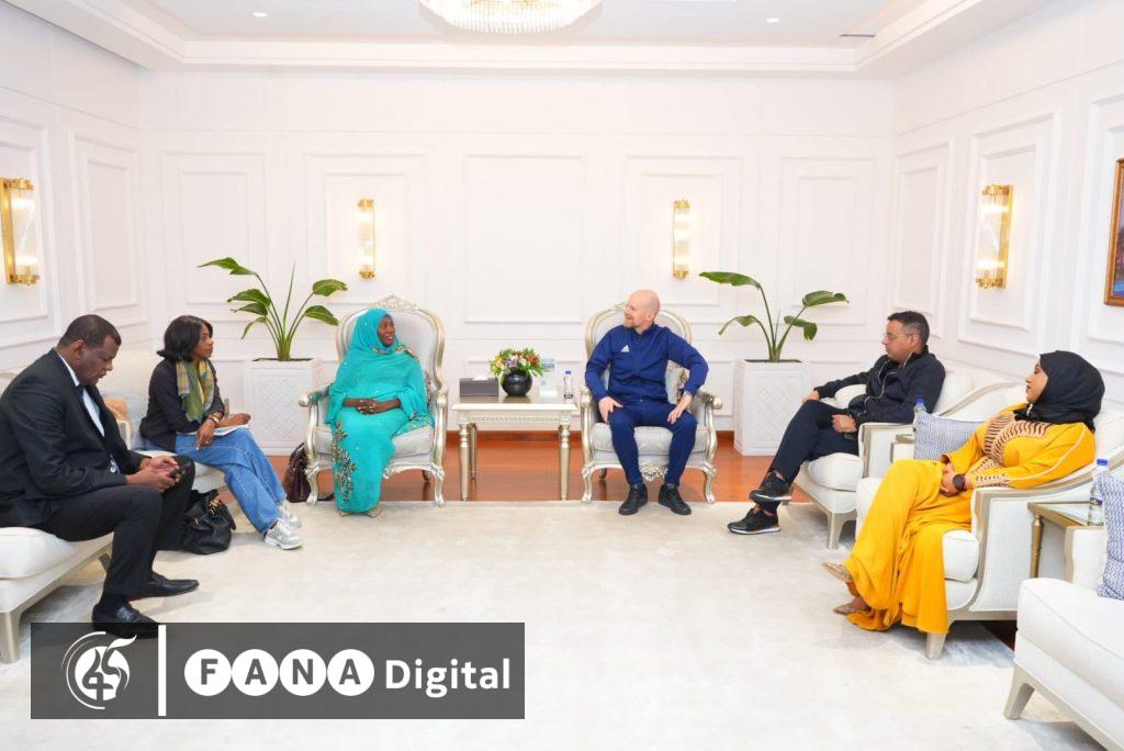 በቦሌ ዓለም አቀፍ አውሮፕላን ማረፊያ ሲደርሱም የሴቶችና ማህበራዊ ጉዳይ ሚኒስትር ዴዔታ ሁሪያ አሊ፣ የባህልና ስፖርት ሚኒስትር ዴዔታ ነፊሳ አልመኻዲ እና ሌሎች ከፍተኛ የስራ ሃላፊዎች አቀባበል እንዳደረጉላቸው የውጭ ጉዳይ ሚኒስቴር መረጃ ያመላክታል።