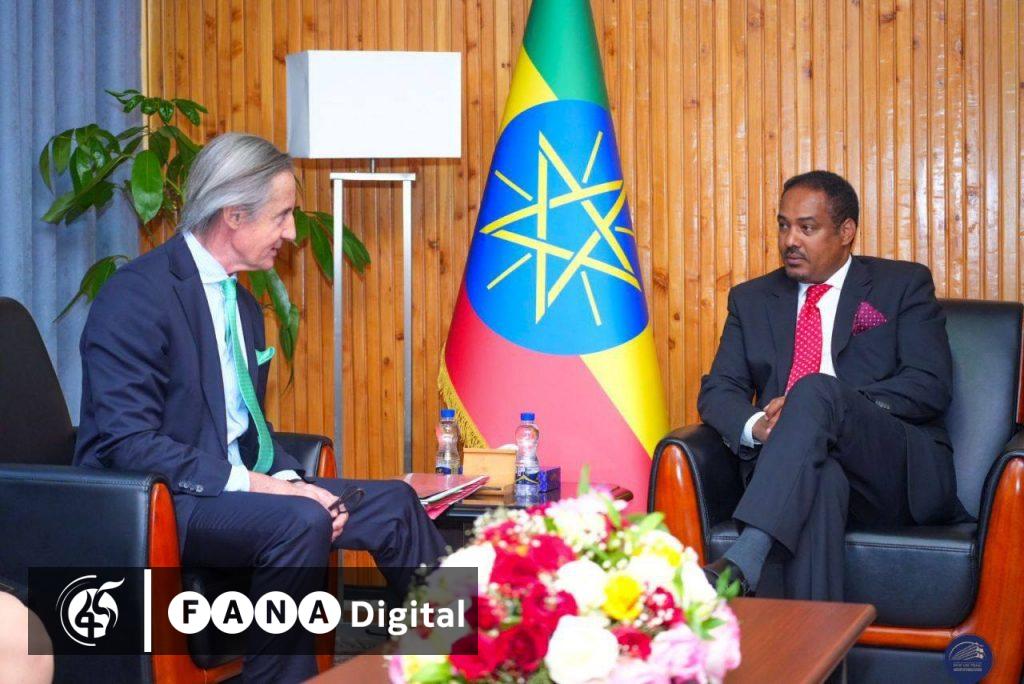 የውጭ ጉዳይ ሚኒስትር ዴኤታ አምባሳደር ምስጋኑ አርጋ የኦስትሪያ የፌዴራል መራሔ መንግሥት ዓለም አቀፍ ጉዳዮች ልዩ መልዕክተኛ አምባሳደር ፒተር ላውንስኪ ጋር ተወያይተዋል።