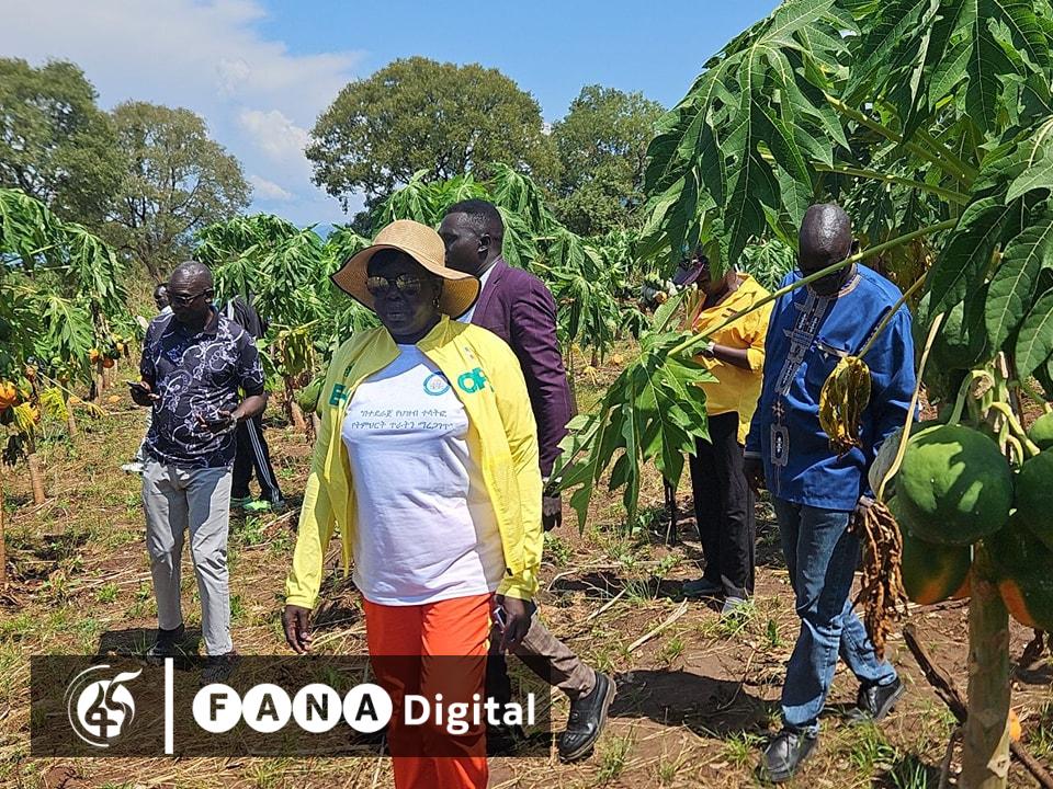 ርዕሰ መሥተዳድሯ በጋምቤላ ወረዳ በቦንጋና በኮበን ቀበሌ እየተከናወኑ ያሉ የልማት ሥራዎችን በጎበኙት ወቅት እንዳሉት÷ የጋምቤላ ክልል እምቅ የውኃ፣ የመሬት፣ የማዕድን፣ ምቹ የአየር ፀባይ እና የሰው ኃይል የታደለ ነው፡፡