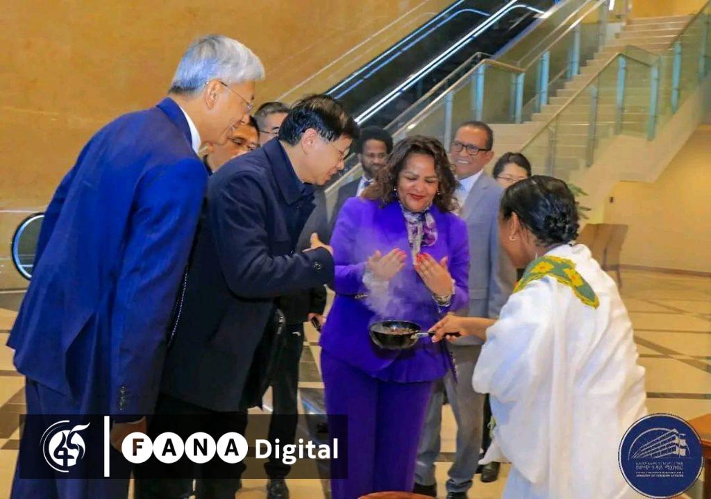 ልዑኩ ቦሌ ዓለም አቀፍ አውሮፕላን ማረፊያ ሲደርስ የውጭ ጉዳይ ሚኒስትር ዴዔታ አምባሳደር ብርቱካን አያኖ እና ሌሎች ከፍተኛ የሥራ ሃላፊዎች አቀባበል አድርገውለታል።