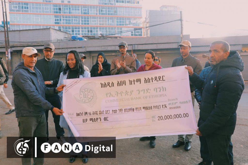 አዲስ አበባ፣ ሕዳር 13፣ 2017 (ኤፍ ቢ ሲ) የአዲስ አበባ ከተማ አስተዳደር መርካቶ ሸማ ተራ አካባቢ ተከስቶ በነበረው የእሳት አደጋ ሱቅ የተቃጠለባቸው ነጋዴዎችን በጊዜያዊነት መልሶ ለማቋቋም የ20 ሚሊየን ብር ድጋፍ አደረገ፡፡