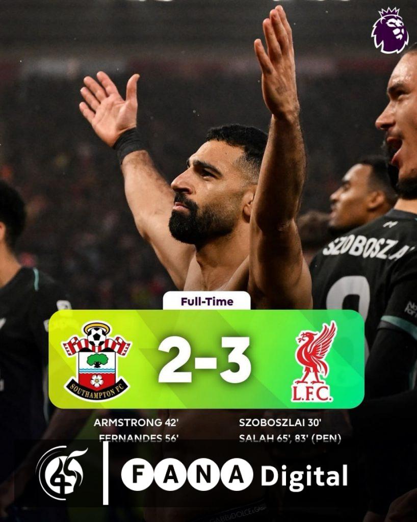 ለሊጉ መሪ ዶሚኒክ ዞቦስላይ እና ሞሃመድ ሳላህ ግቦቹን ሲያስቆጥሩ ለሳውዝሃምፕተን ከመሸነፍ ያልታደጋቸውን ግቦች አርምስትሮንግ እና ማቲያስ ፈርናንዴዝ ግቦቹን አስቆጥረዋል፡፡