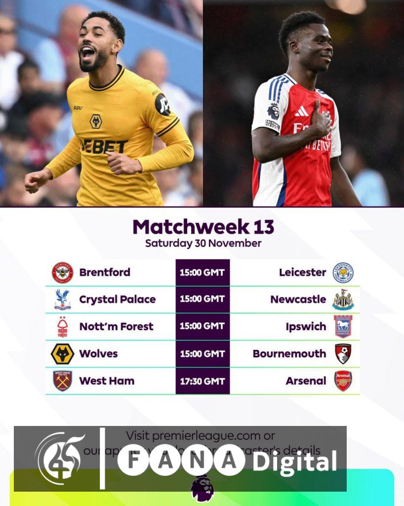 አዲስ አበባ፣ ሕዳር 20፣ 2017 (ኤፍ ቢ ሲ) የእንግሊዝ ፕሪሚየር ሊግ 13ኛ ሳምንት መርሐ ግብሮች ዛሬ ሲካሄዱ በለንደን ደርቢ ዌስትሃም ዩናይትድ ከአርሰናል የሚያደርጉት ጨዋታ ይጠበቃል፡፡