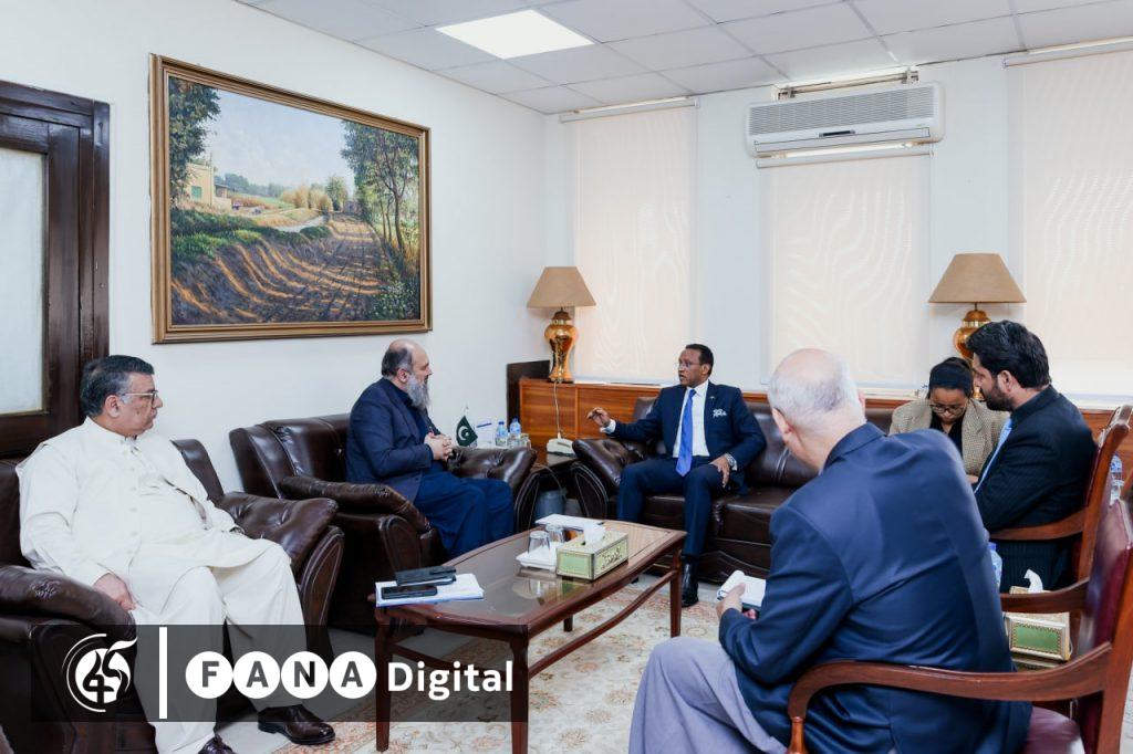 በፓኪስታን የኢትዮጵያ አምባሳደር ጀማል በከር ከፓኪስታን የንግድ ሚኒስትር ጃም ከማል ካን ጋር ተወያይተዋል።