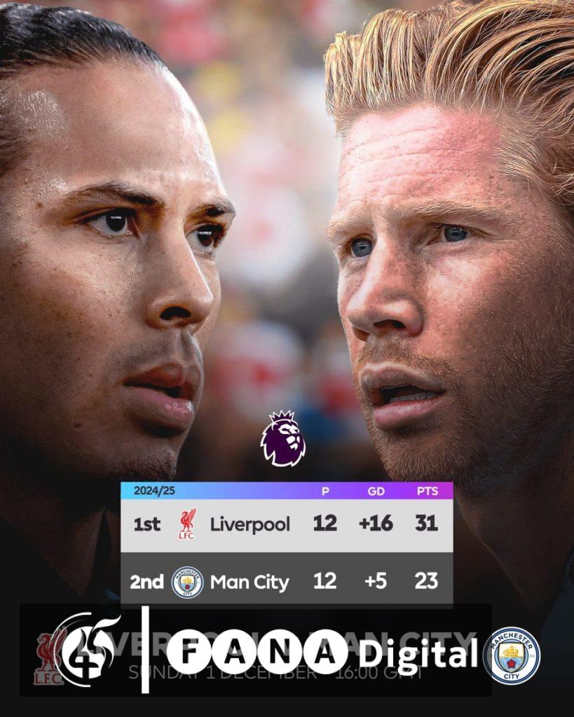 አዲስ አበባ፣ ሕዳር 22፣ 2017 (ኤፍ ቢ ሲ) የ13ኛ ሣምንት የእንግሊዝ ፕሪሚየር ሊግ መርሐ-ግብሮች ሲቀጥሉ ምሽት 1 ሠዓት ላይ ሊቨርፑል በአንፊልድ ከማንቼስተር ሲቲ ጋር የሚያደርጉት ፍልሚያ በጉጉት ይጠበቃል፡፡