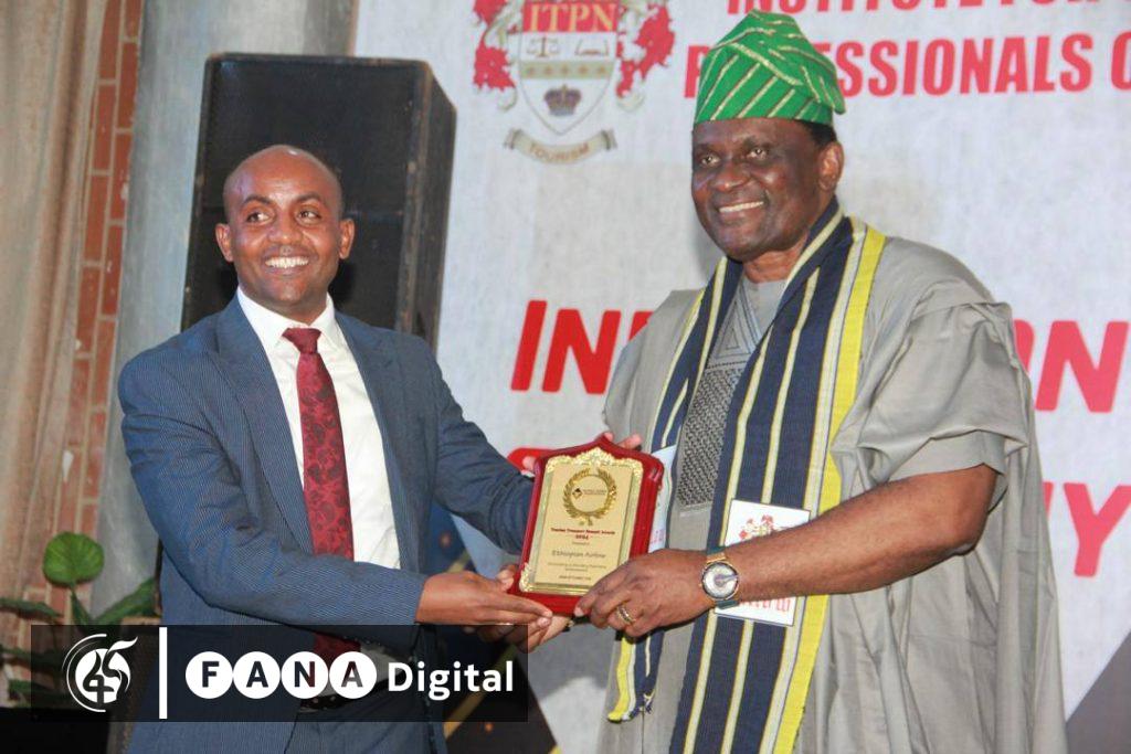 አየር መንገዱ በናይጄሪያ አቡጃ በተካሄደው የቱሪዝምና ትራንስፖርት ኤክስፖ ለናይጄሪያ የቱሪዝም ኢንደስትሪ ዕድገት በአየር ትራንስፖርቱ ዘርፍ እያበረከተ ላለው የላቀ አስተዋፅዖ ነው ሽልማት የተበረከተለት።