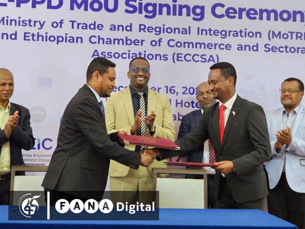 የመግባቢያ ስምምነቱን የንግድና ቀጣናዊ ትስስር ሚኒስትር ዴኤታ አብዱልሀኪም ሙሉ (ዶ/ር) እና የኢትዮጵያ የንግድና ዘርፍ ምክር ቤት ፕሬዝዳንት ሰብስብ አባፊራ ፈርመውታል።