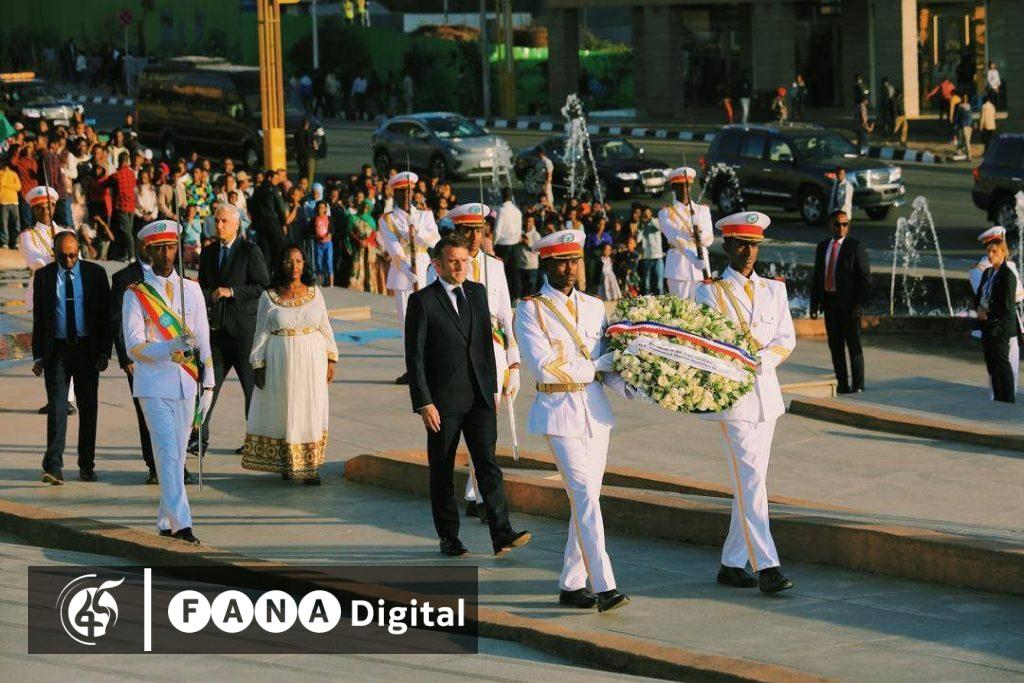 አዲስ አበባ፣ ታሕሣሥ 12፣ 2017 (ኤፍ ኤም ሲ) የፈረንሳይ ፕሬዚዳንት ኢማኑኤል ማክሮን በዓድዋ ድል መታሰቢያ ሐውልት ሥር የአበባ ጉንጉን አስቀምጠዋል፡፡