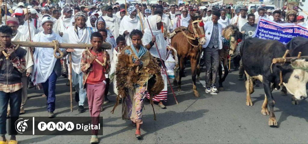 የሰልፉ ተሳታፊዎች ዘላቂ ሰላም እንዲሰፍን ጠይቀዋል።