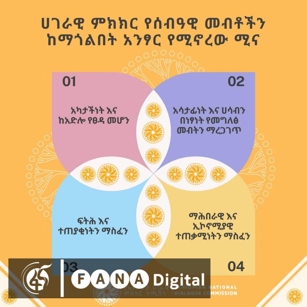 ይህም የሀገራዊ ምክክር ሂደቶች እና የሰብዓዊ መብቶች ቀጥተኛ ግንኙነት እንዳላቸው አመላካች ሲሆን ከዚህ በታች የተገለፁት ሐሳቦች የሁለቱን ግንኙነት ያስረዳሉ መባሉን የኮሚኑ መረጃ አመላክቷል፡፡