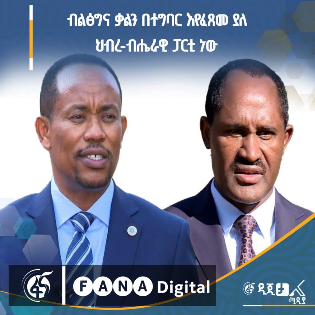 አዲስ አበባ፣ ታሕሣሥ 20፣ 2017 (ኤፍ ኤም ሲ) ብልፅግና ቃልን በተግባር እየፈጸመ ያለ ህብረ-ብሔራዊ ፓርቲ መሆኑን ደቡብ ኢትዮጵያና ሲዳማ ክልሎች ርዕሳነ መስተዳድሮች ገለፁ፡፡