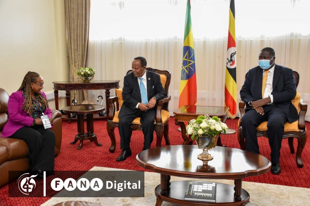 ፕሬዚዳንቱ ኢንተቤ ዓለም አቀፍ አውሮፕላን ማረፊያ ሲደርሱ የሀገሪቱ መከላከያና የአርበኞች ጉዳይ ሚኒስትር ጃኮብ ማርክሰንስ ኦቦት አቀባበል አድርገውላቸዋል፡፡