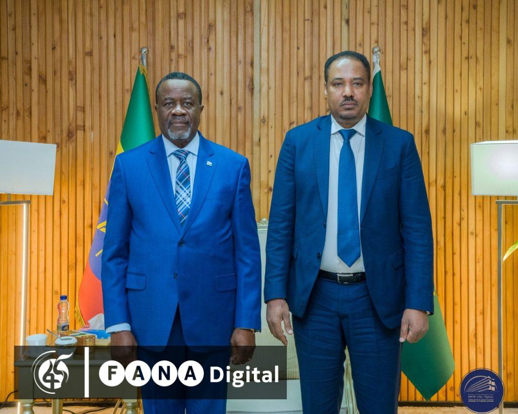 አምባሳደር ምስጋኑ በኢትዮጵያ የናሚቢያ አምባሳደር ምባፔዋ ሙቫንጓ ጋር ባደረጉት ውይይት÷ በንግድ፣ ኢንቨስትመንት እና አቪዬሽን የትብብር መስኮች ማጠናከር እንደሚገባ ጠቅሰዋል።