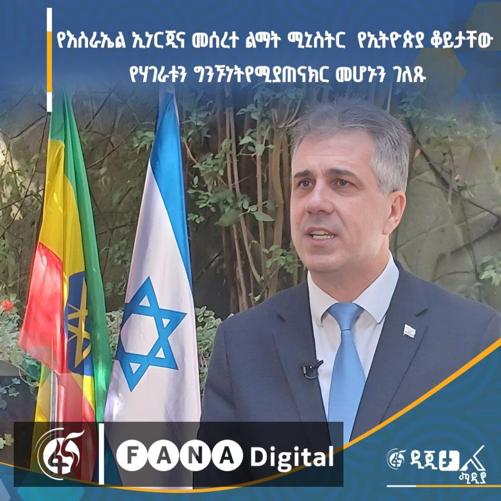 በኢትዮጵያ የእስራኤል አምባሳደር ዶክተር አብርሃም ንጉሴ በበኩላቸው÷ የእስራኤል ኢነርጂ እና መሰረተ ልማት ሚኒስትር አሊ ኮህን ወደ ኢትዮጵያ መምጣታቸው የሁለቱን ሀገራት ሁሉን አቀፍ ግንኙነት የሚያጠናክር ነው ብለዋል፡፡