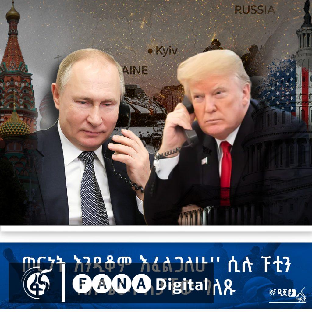 አዲስ አበባ፣ የካቲት 3፣ 2017 (ኤፍ ኤም ሲ) የአሜሪካው ፕሬዚዳንት ዶናልድ ትራምፕ የሩሲያው አቻቸው ቭላድሚር ፑቲንን ጦርነት ማስቆም በሚቻሉባቸው ጉዳዮች ላይ በስልክ መምከራቸውን ተሰምቷል፡፡