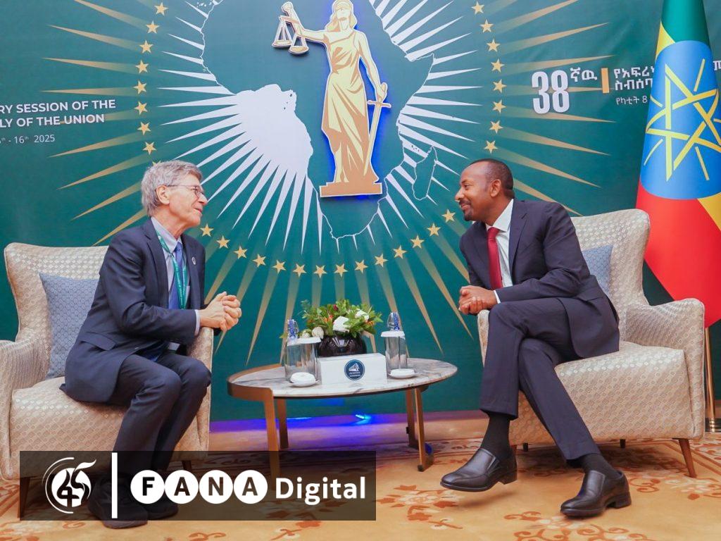 አዲስ አበባ፣ የካቲት 9፣ 2017 (ኤፍ ኤም ሲ) ጠቅላይ ሚኒስትር ዐቢይ አሕመድ (ዶ/ር) ከተባበሩት መንግስታት የዘላቂ ልማት መፍትሔዎች ኔትዎርክ ፕሬዚዳንት ጄፍሪ ዲ ሳች (ፕ/ር) ጋር ተወያይተዋል።