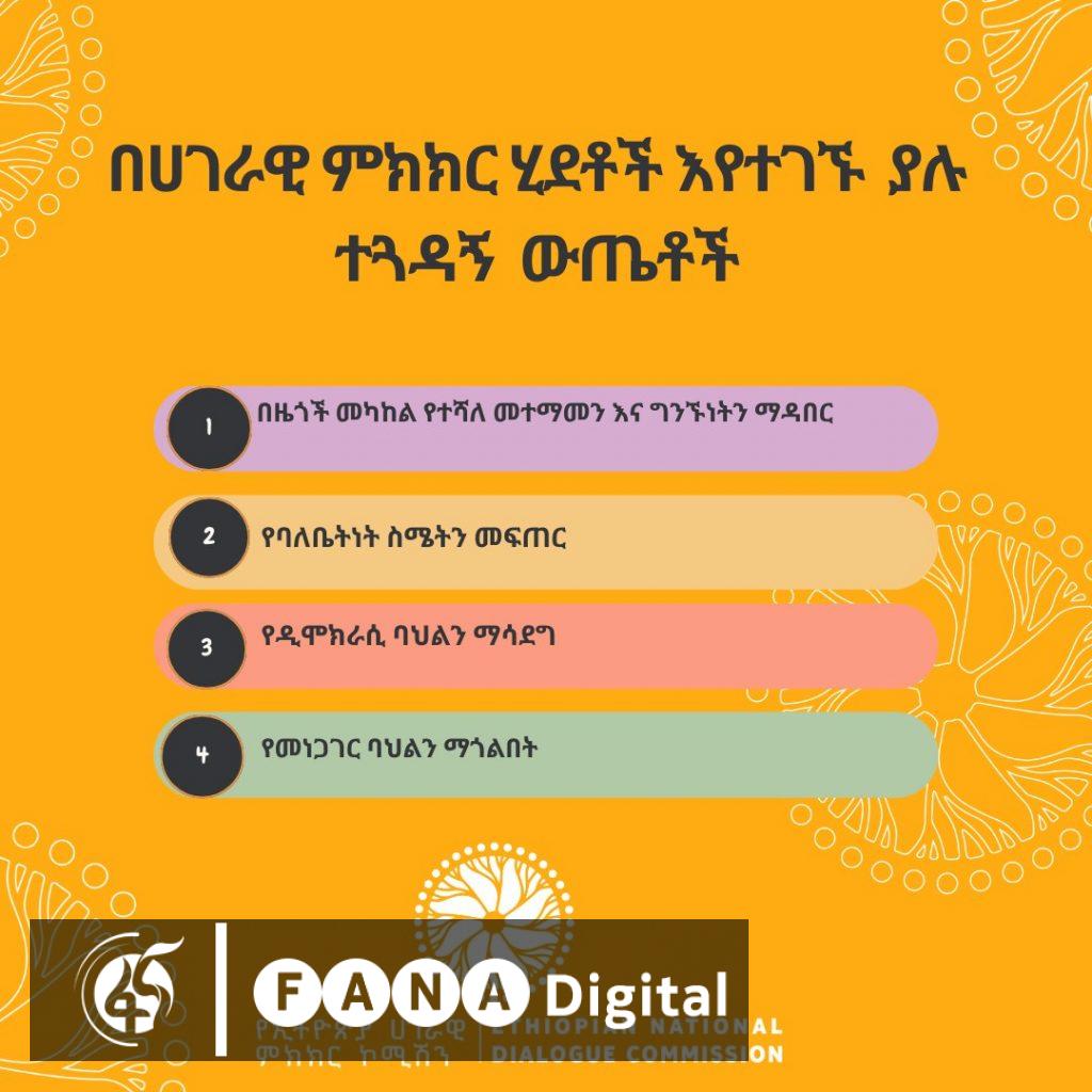 በዚህ ሂደት ኮሚሽኑ አጀንዳን ከተለያዩ ባለድርሻ አካላት መሰብሰብ ተቀዳሚ ግቡ መሆኑ ቢታወቅም ሂደቱ ከዚህ በታች የተጠቀሱትን አይነት ቀጥተኛ ያልሆኑ በጎ አስተዋፅኦችን ለሀገር በማበርከት ላይ ነው፡፡