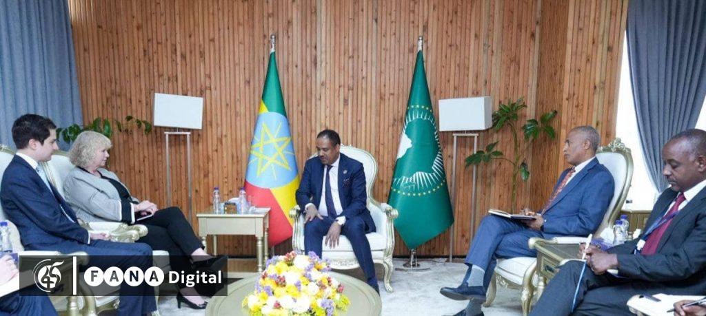 አዲስ አበባ፣ የካቲት 13፣ 2017 (ኤፍ ኤም ሲ) የውጭ ጉዳይ ሚኒስትር ዴኤታ አምባሳደር ምስጋኑ አርጋ ከእንግሊዝ የቀይ ባሕር እና የአፍሪካ ቀንድ ልዩ መልዕክተኛ አሊሰን ብላክበርን ጋር ተወያይተዋል።